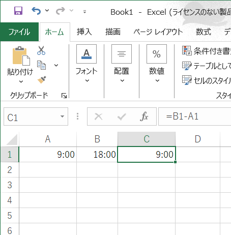 9時間 が計算されます。