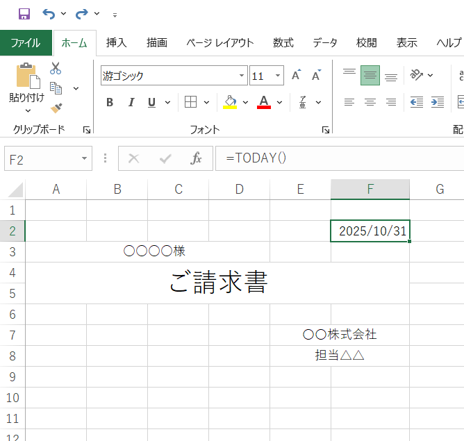 そんなときも、あらかじめ日付欄に =TODAY() を入れておけば、印刷前に自動で最新の日付に更新されます。