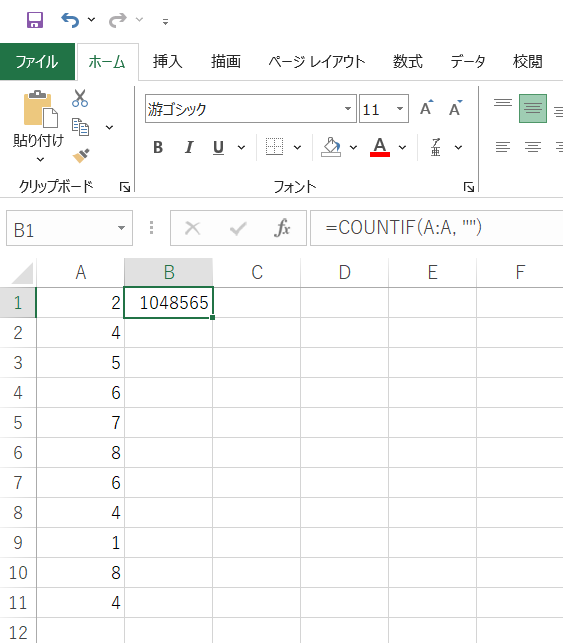 「A列の空白セルの数」